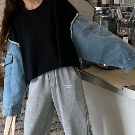 デニム風の幅広の袖が特徴的。